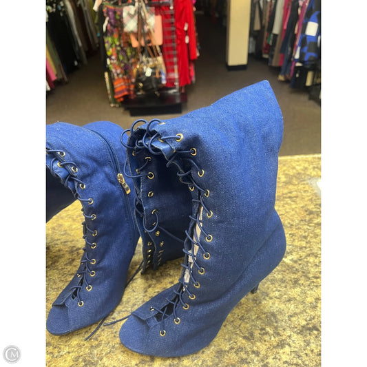 Boots Knee Heels By Clothes Mentor In Blue, Size: 10