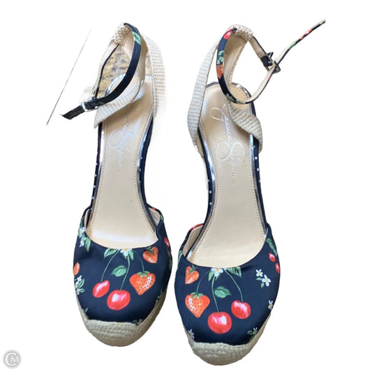 Sandals Heels Wedge By Jessica Simpson In Blue & Tan, Size: 10