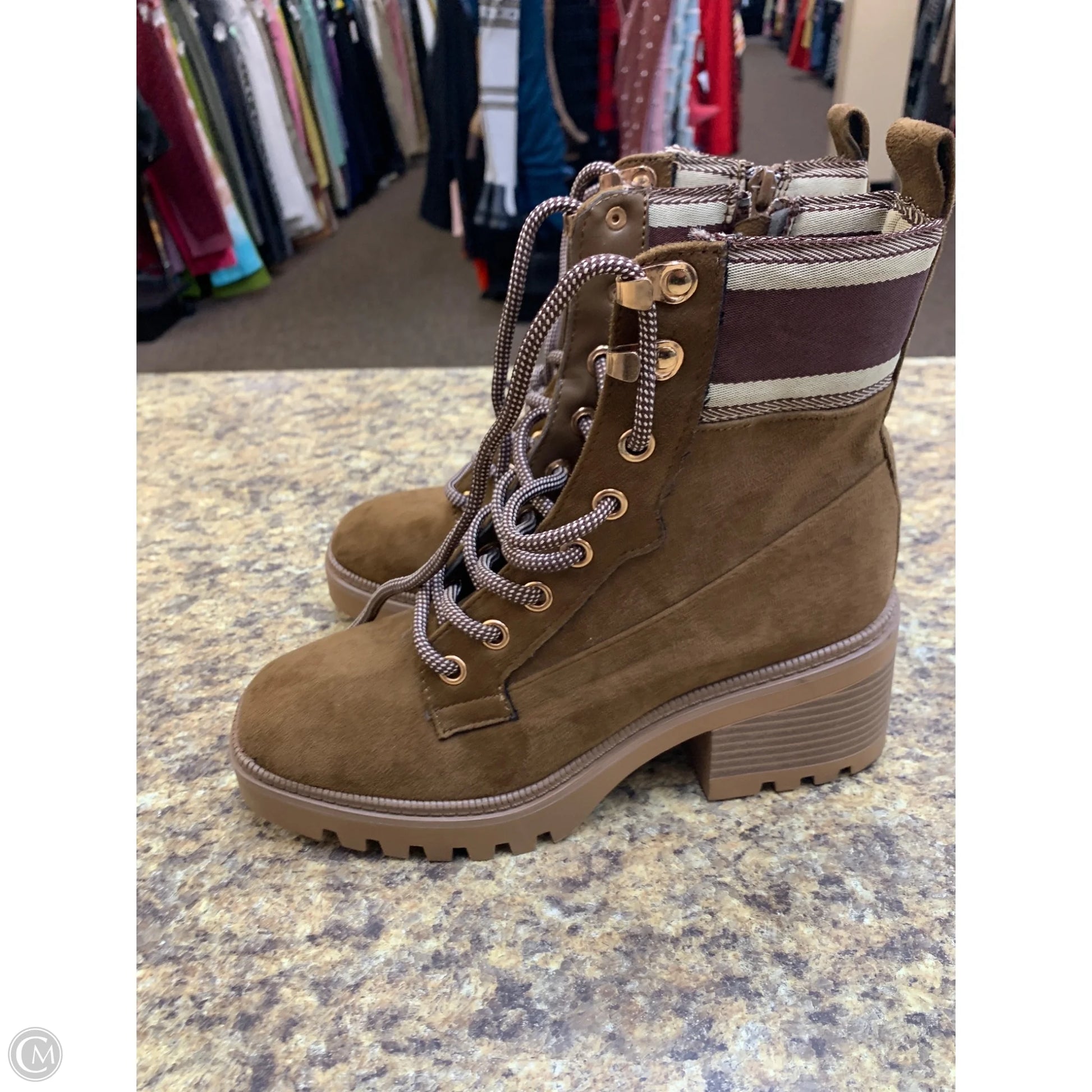 Boots Ankle Heels By Bamboo In Brown, Size: 7.5