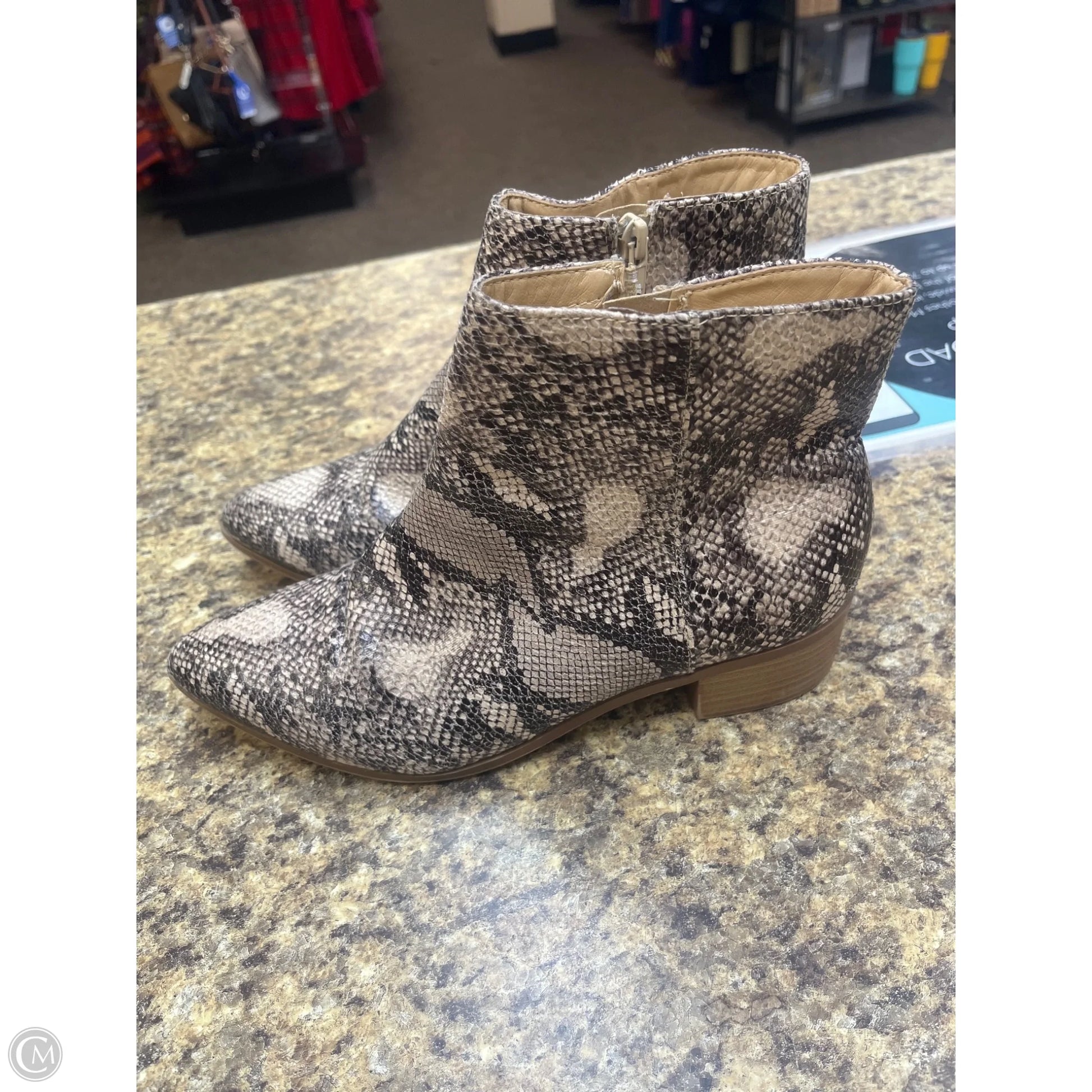 Boots Ankle Heels By City Classified In Snakeskin Print, Size: 8