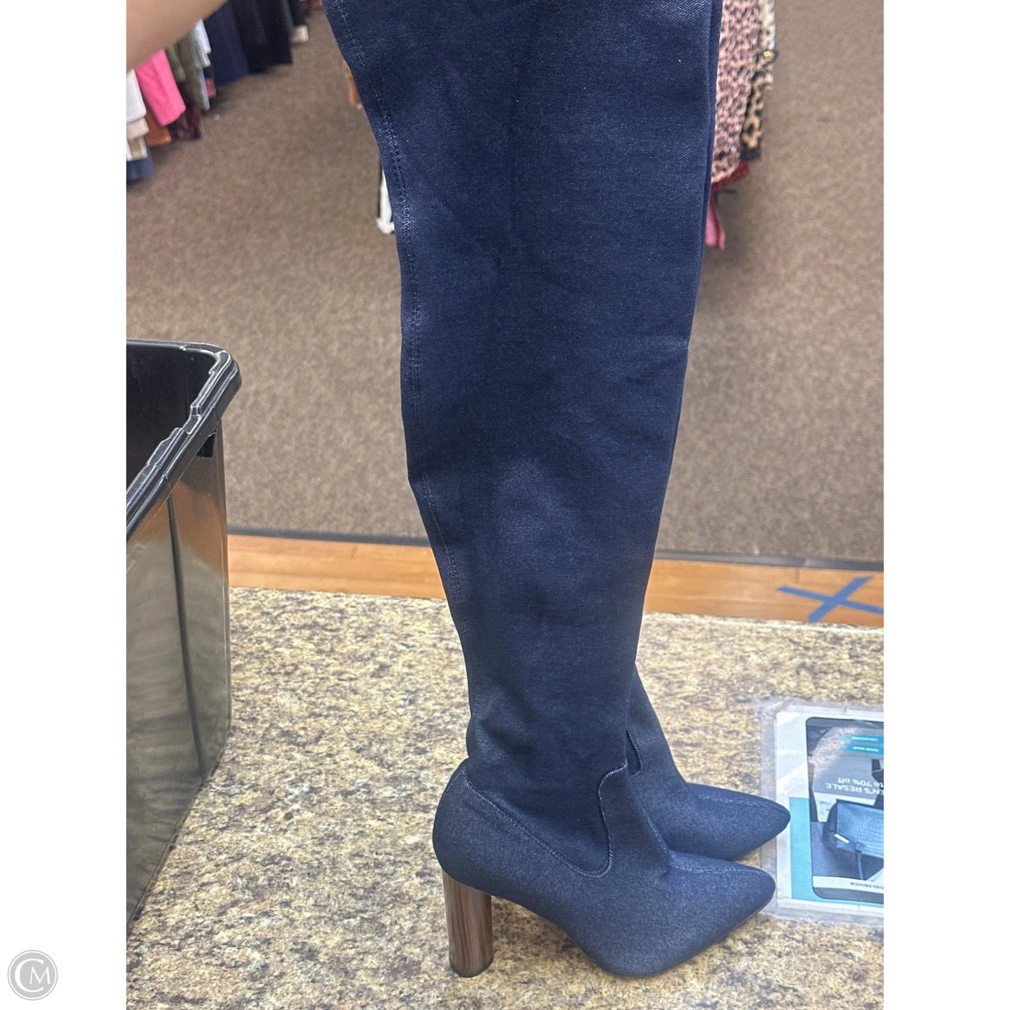 Boots Knee Heels By Herstyle In Blue Denim, Size: 8