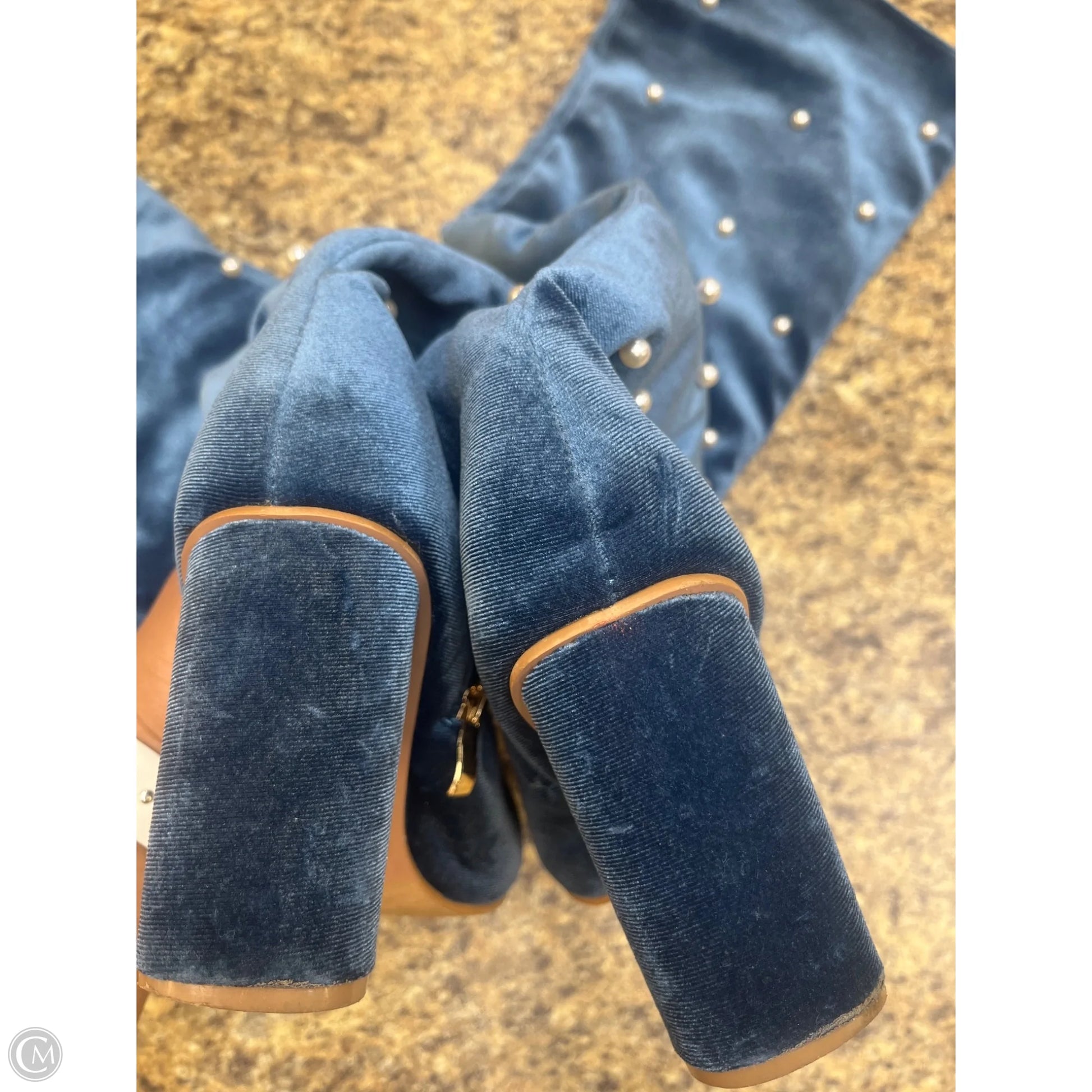 Boots Knee Heels By Yoki In Blue, Size: 8