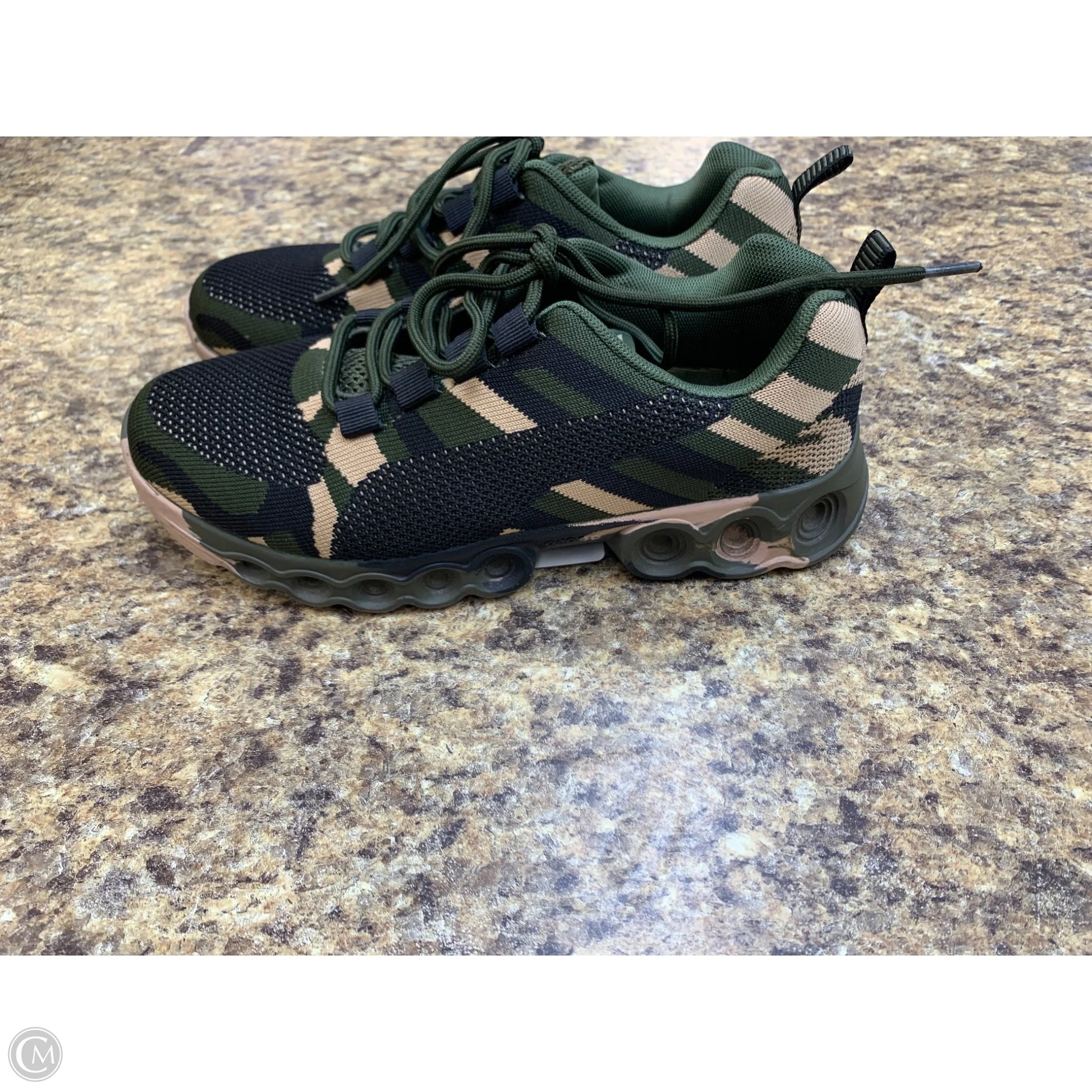Step up your sneaker game with these cool camouflage print athletic shoes by CMF. Size 7 available. Add to cart now!