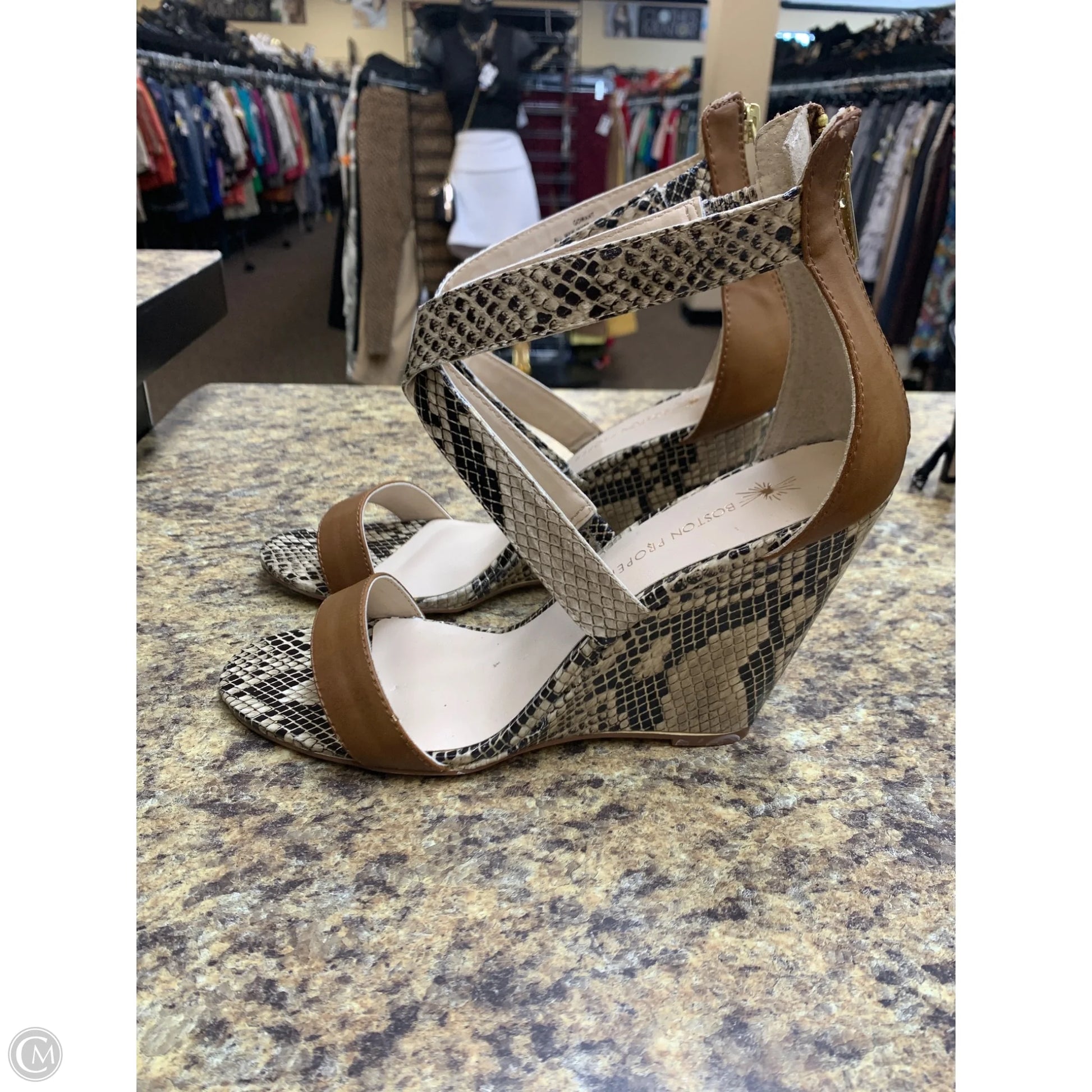 Shoes Heels Wedge By Boston Proper In Snakeskin Print, Size: 10