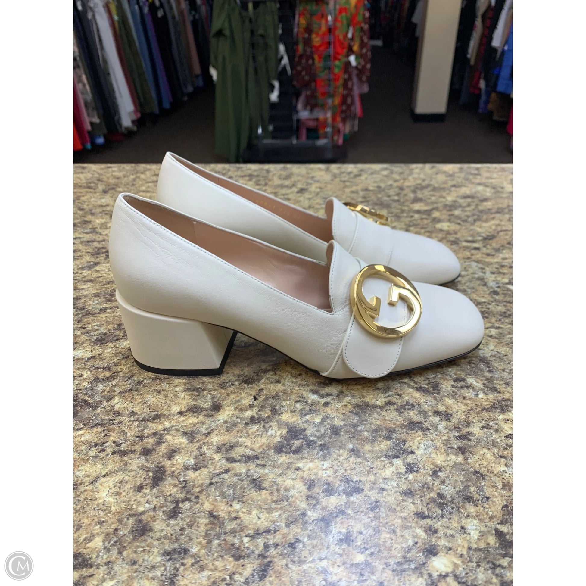 Shoes Luxury Designer By Gucci In Beige, Size: 7.5