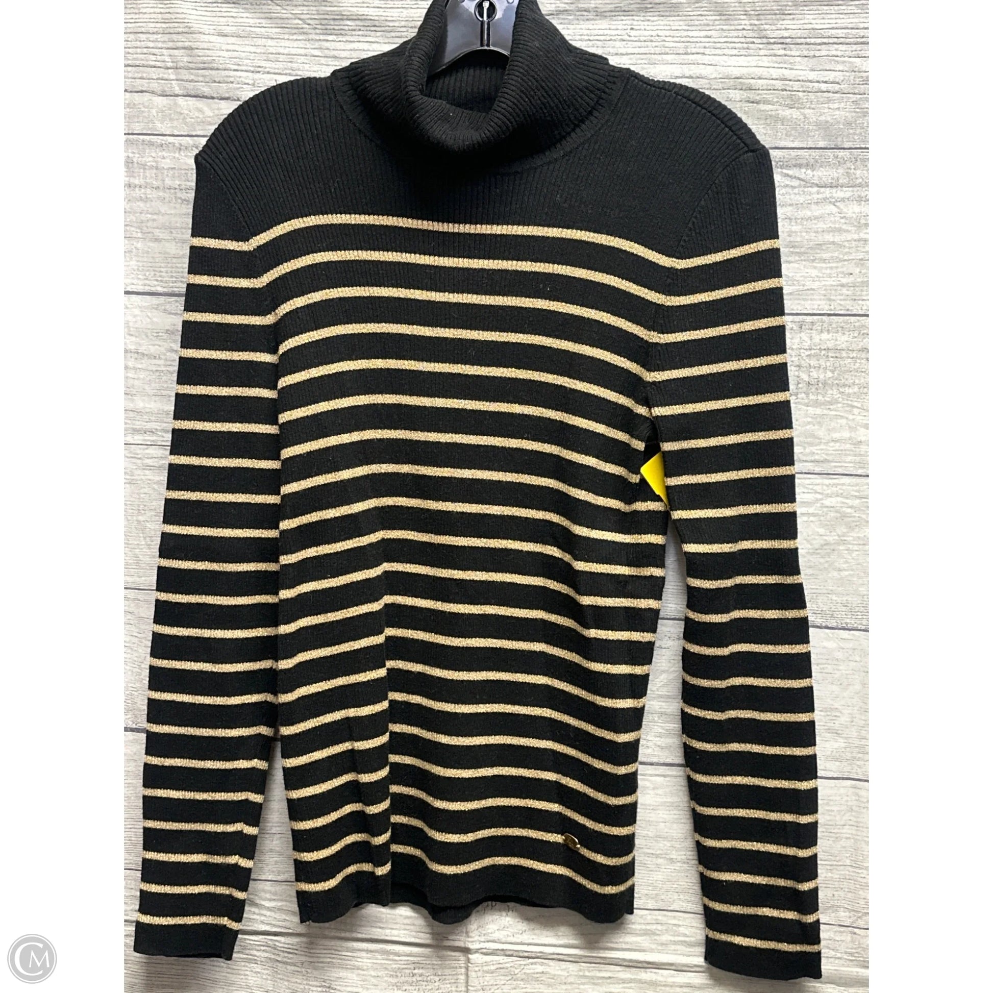 Sweater By Lauren By Ralph Lauren In Black & Gold, Size: L